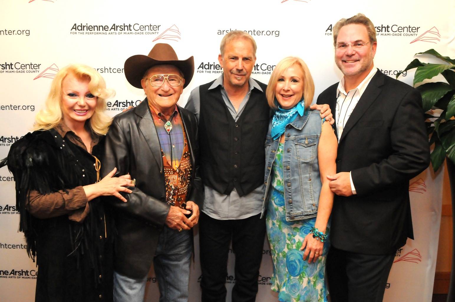 On April 28th, hundreds of South Florida’s most influential art patrons, philanthropists and business and civic leaders arrived decked in cowboy hats and boots to the Adrienne Arsht Center for the Performing Arts of Miami-Dade County’s sixth annual Gala. Actor Kevin Costner and his rock ‘n’ roll band, Modern West, headlined the 550-person Gala. The event took place under the lights in the John S. and James L. Knight Concert Hall where attendees enjoyed modern comfort food provided by Barton G. and signature cocktails by Bombay Sapphire and Bacardi USA.