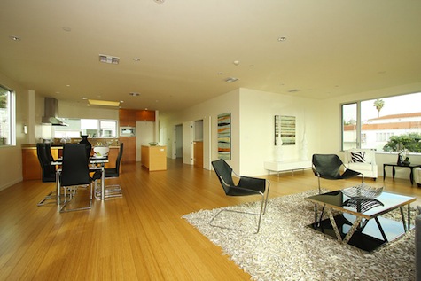 The pristine penthouse is composed of three bedrooms, three and a half bathrooms, an in-unit washer and drier, a wrap-around terrace, bamboo floors and two parking spaces.