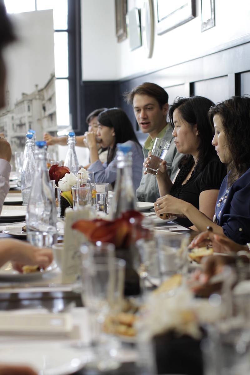 Students from the college played smooth jazz sounds as guests shared laughs at the communal tables decorated with lively orchids surrounded in a bed of coffee beans, and enjoyed a four-course, family-style meal of crab cakes, crème brulee French toast and other creations freshly prepared by chef David Myers, the restaurant’s award-winning chef who welcomed the crowd at the start of the event.