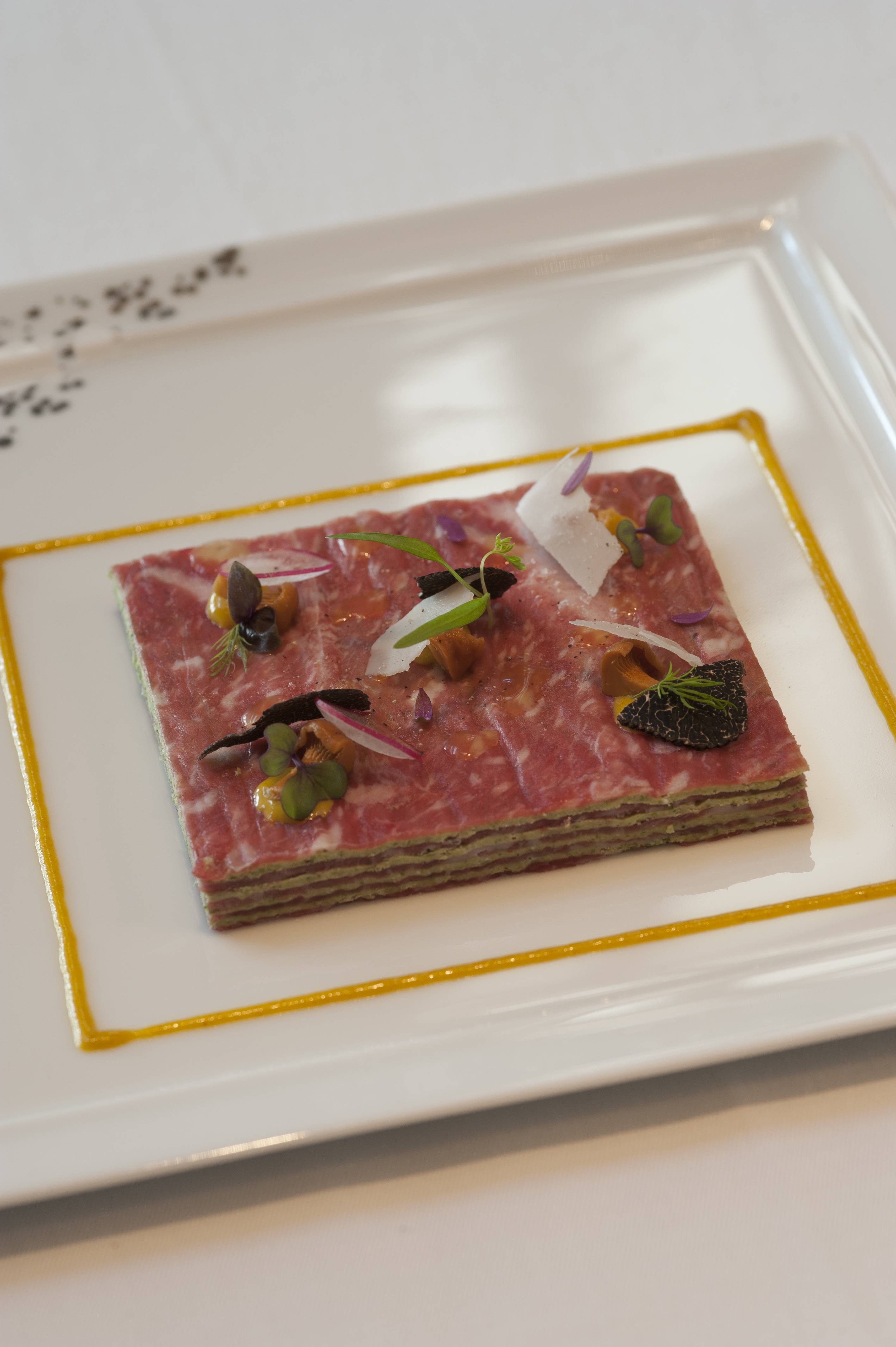 My guest and I were greeted by friendly staff and directed to one of the tables located on the upper level of the venue so that we had a view of the main dining room below. We were provided with scented refreshing towels and given a brief overview of the menu which was in store for us. We were explained that the menu is seasonal and that ingredients are used according to their freshness and availability. Such a bespoke culinary experience was further heightened when the sommelier came out to introduce himself. He wanted to know our selections in order to prepare the appropriate wines – a full rich red wine for the meat and a light white for the fish.