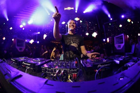 The weekend did not go without familiar faces in the crowd as celebrities flocked to take in the EDM marathon. Fellow dance music icon Kaskade; socialites Paris and Nikki Hilton and their parents Kathy and Rick Hilton; “Dancing with the Stars” pros Cheryl Burke, Mark Ballas, Maksim Chmerkovskiy and Peta Murgatroyd; actor Benicio del Toro; UFC legend Chuck Liddell; NFL standouts Reggie Bush and Shawn Phillips; singer and former N’Sync member Joey Fatone; comedian and “Price Is Right” host Drew Carey; Hollywood royalty Paulina Gretzky and Hannah Selleck; and reality star Crystal Harris all joined in the weekend parties at XS and Tryst.