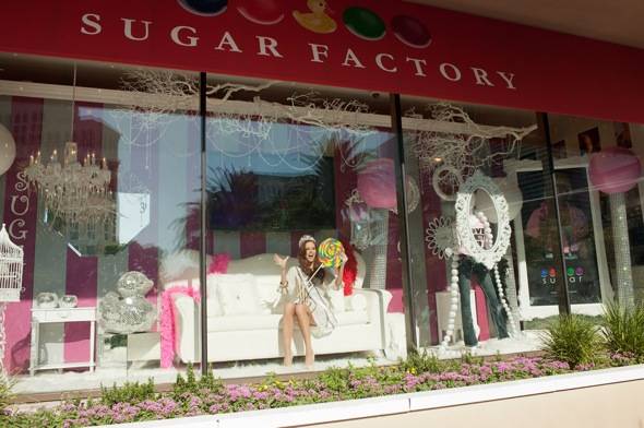 Throughout their afternoon, groups of girls explored the attached retail store and picked up some sweet treats. The current Miss USA Alyssa Campanella even got inside of Sugar Factory’s giant display window, decorated with life-size Couture Pops, and waved to visitors walking the Strip.