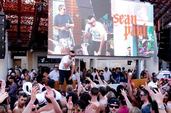 Hitting one pool wasn’t enough so Sean Paul made a stop by Marquee Dayclub at the Cosmopolitan of Las Vegas in the late afternoon and after Avicii’s set he hopped on the mic there, surprising the packed dayclub with two songs and telling everyone to come to his party at Tao Saturday night.