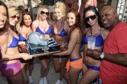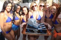 Hip-hop artist Too Short celebrated his 46th birthday poolside at the Rehab Sundays pool party at Beachlife at Hard Rock Hotel on Sunday night. Friends and an entourage of six girls joined Too Short on the Rehab stage. The staff at Rehab brought out a “Blow the Whistle” birthday cake while the crowd sang happy birthday.