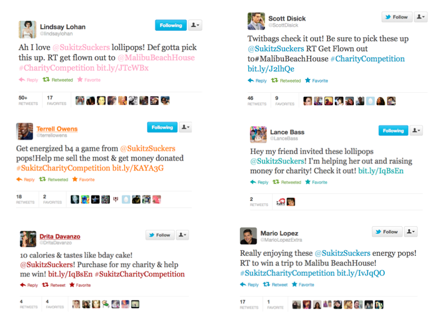 Some of your favorite celebrities have been tweeting up a storm and it’s all for a good cause! Sukitz a unique line of lollipops designed to promote health and well being has started a Twitter war amongst celebrities.