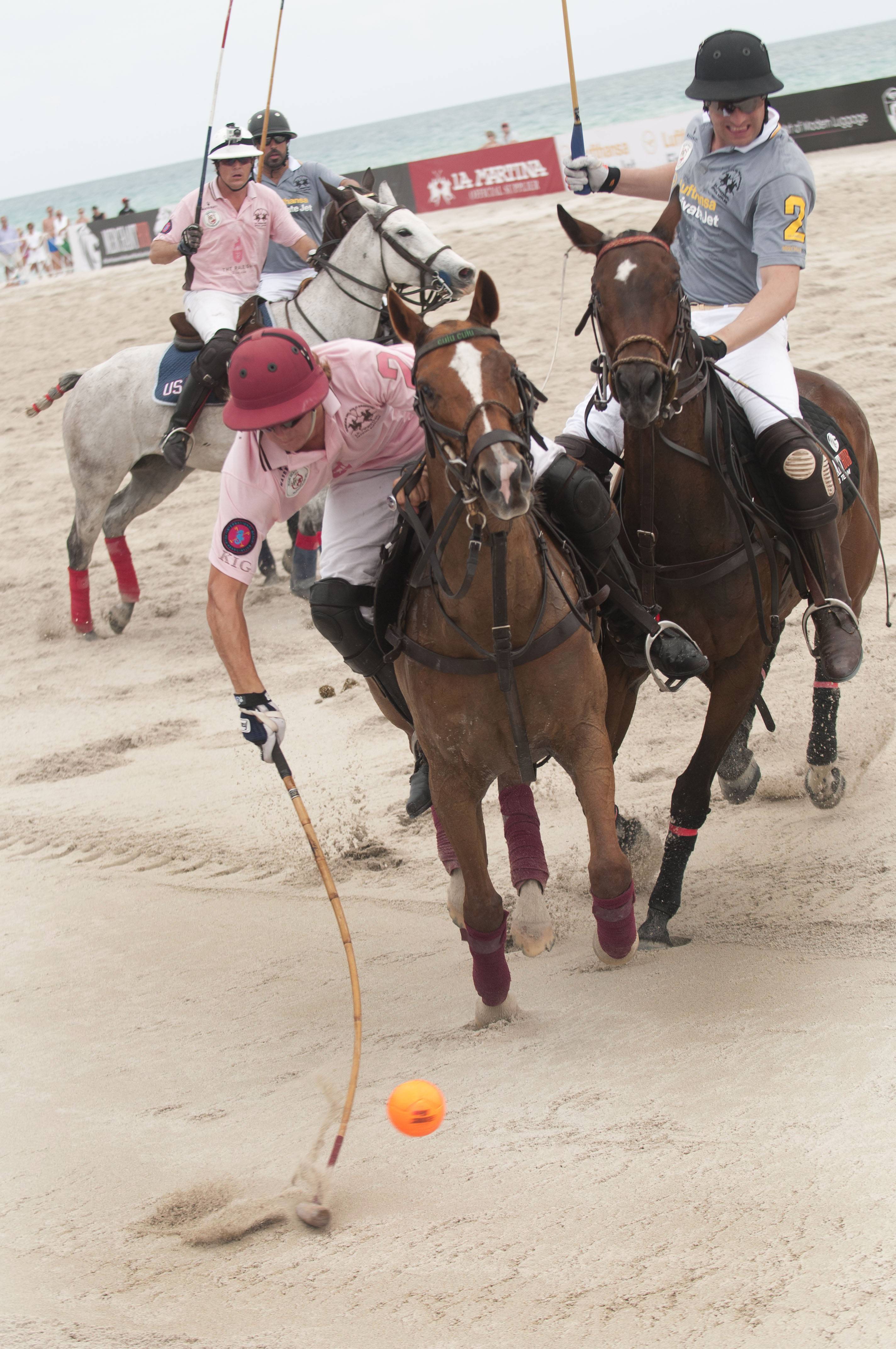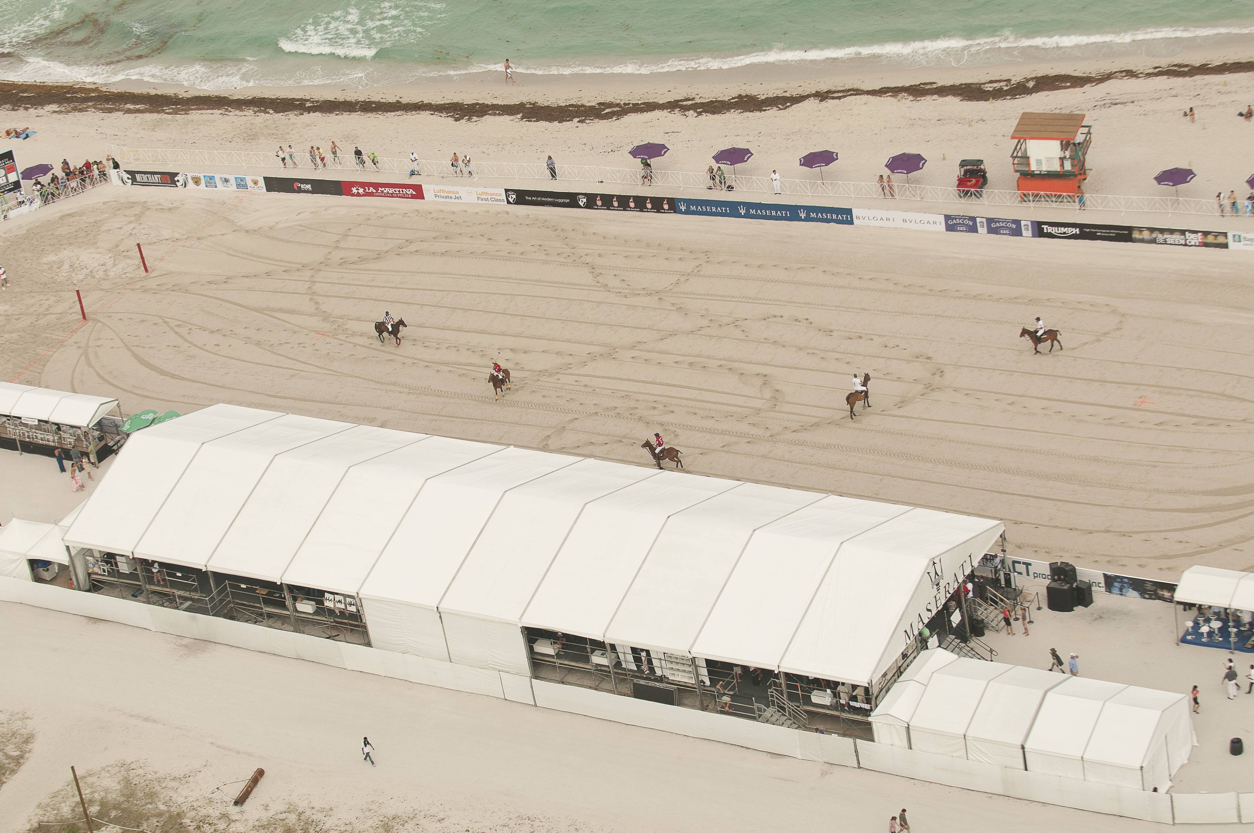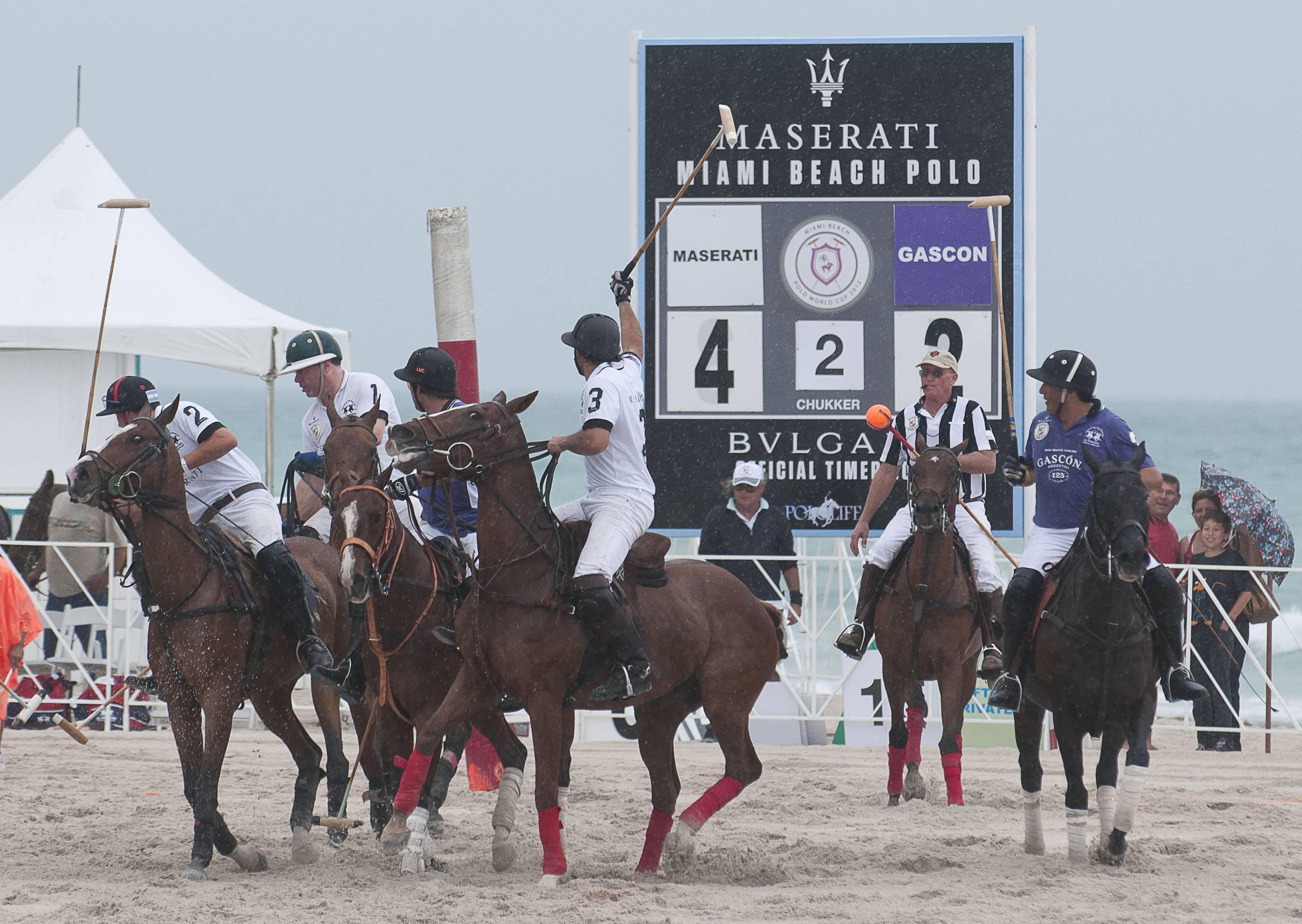 Four days into this year’s beach polo competition on South Beach, turbulent weather brought the tournament to an abrupt halt; the three final matches of Maserati Miami Beach Polo World Cup VIII were cancelled on Sunday, April 29th. The competition consisted of 14 teams of the sport’s most accomplished players with each team competing for the Maserati South Beach Women’s Beach Polo Cup and the Maserati Miami Beach Polo World Cup.