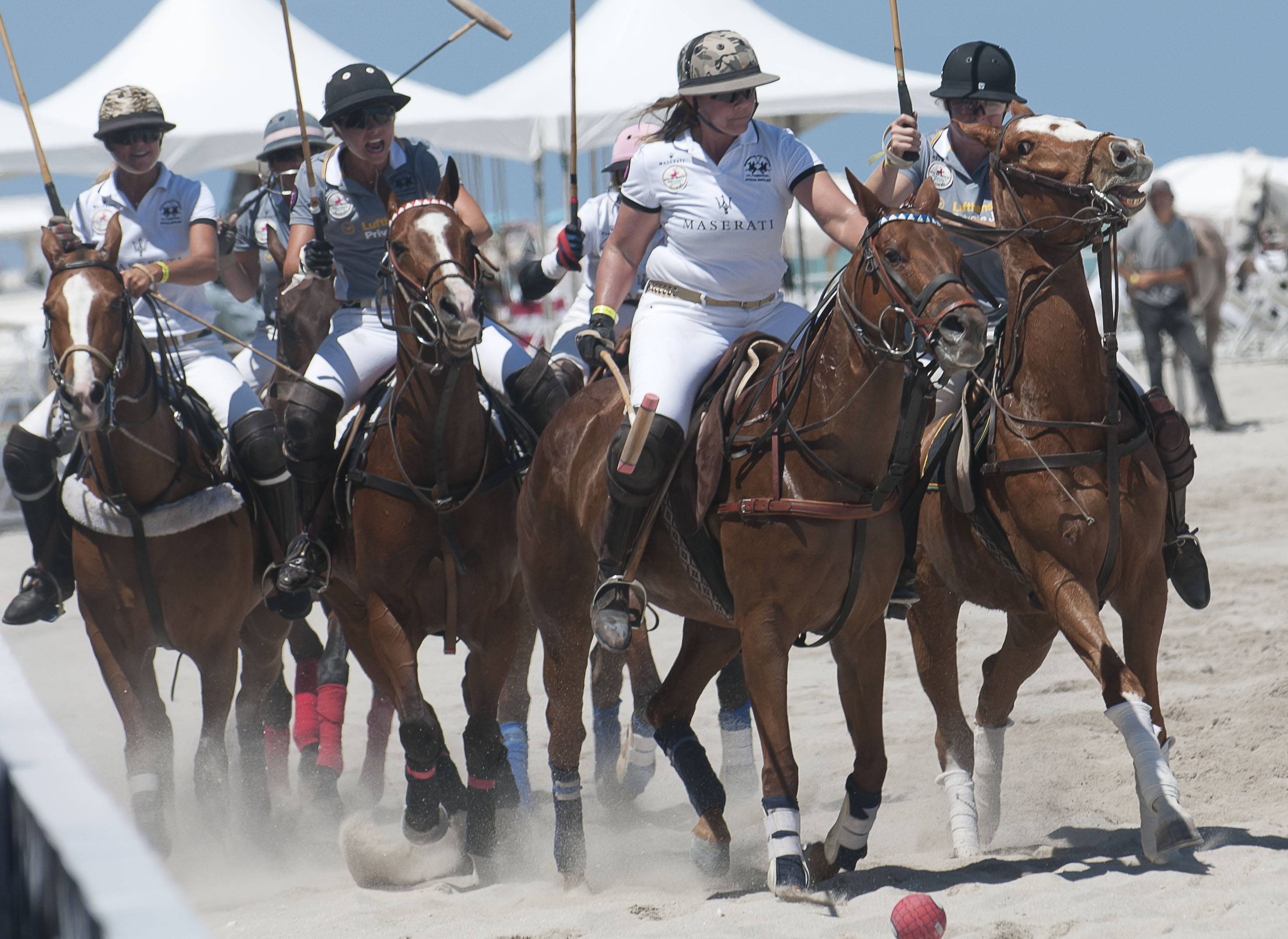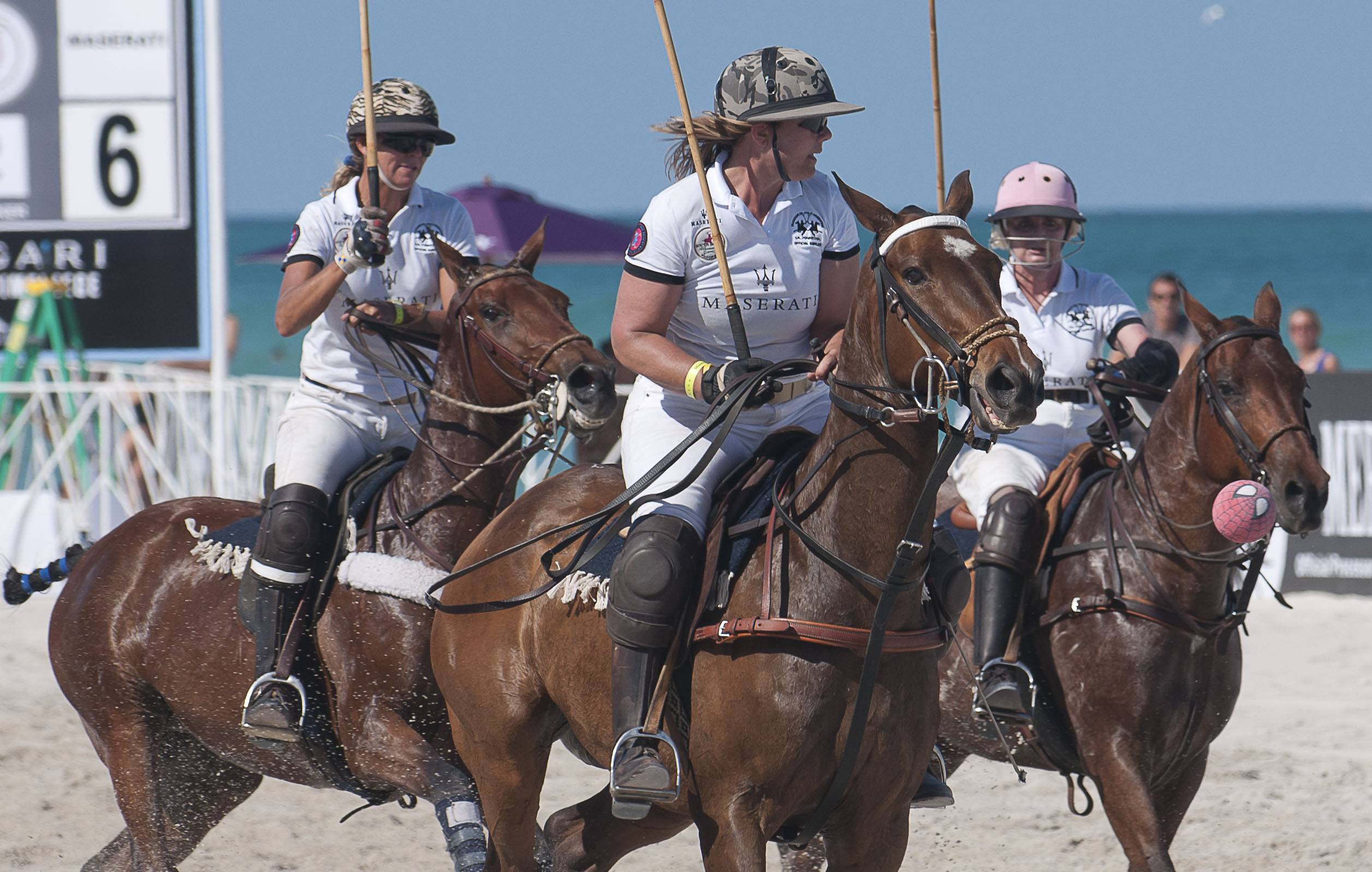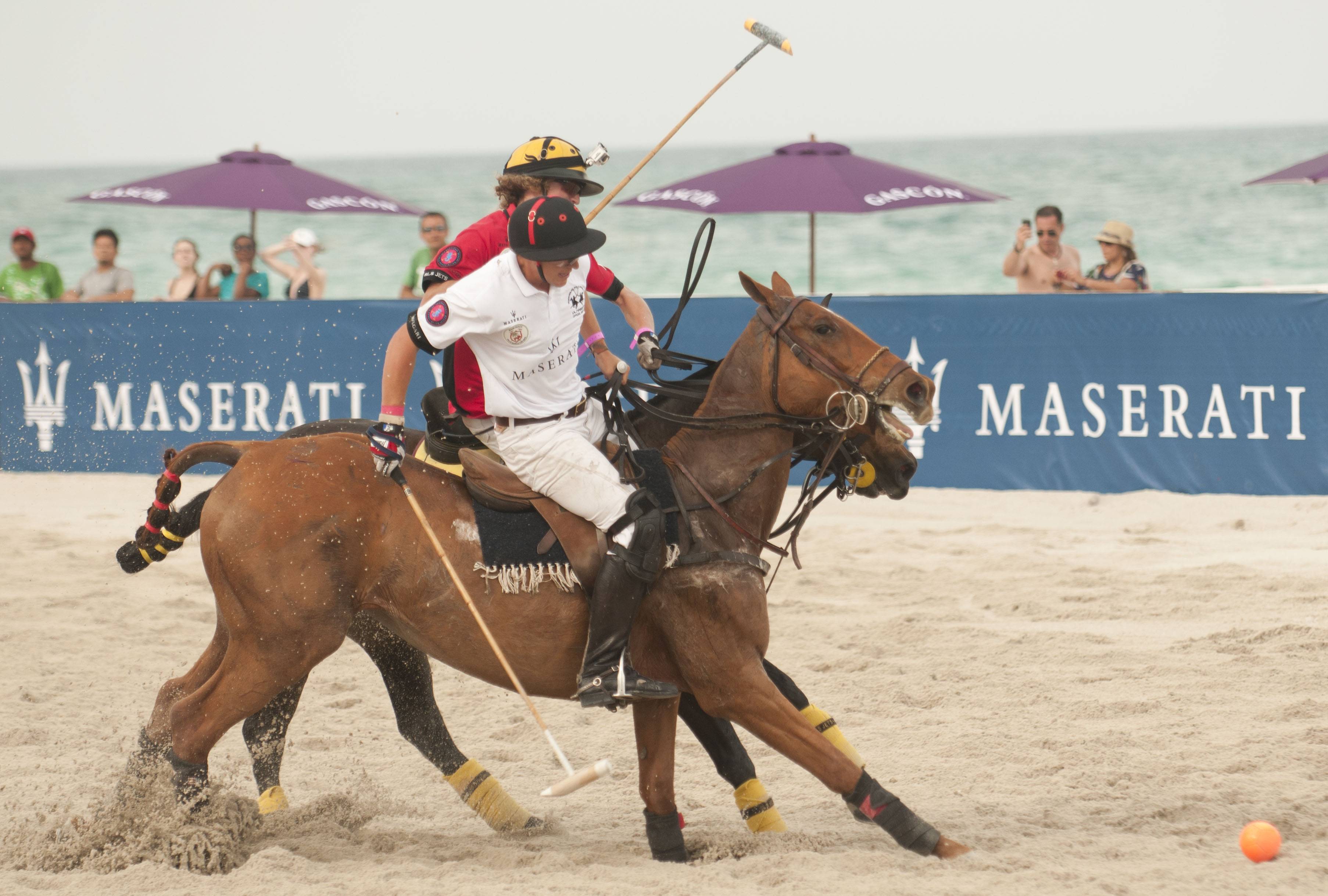 Four days into this year’s beach polo competition on South Beach, turbulent weather brought the tournament to an abrupt halt; the three final matches of Maserati Miami Beach Polo World Cup VIII were cancelled on Sunday, April 29th. The competition consisted of 14 teams of the sport’s most accomplished players with each team competing for the Maserati South Beach Women’s Beach Polo Cup and the Maserati Miami Beach Polo World Cup.