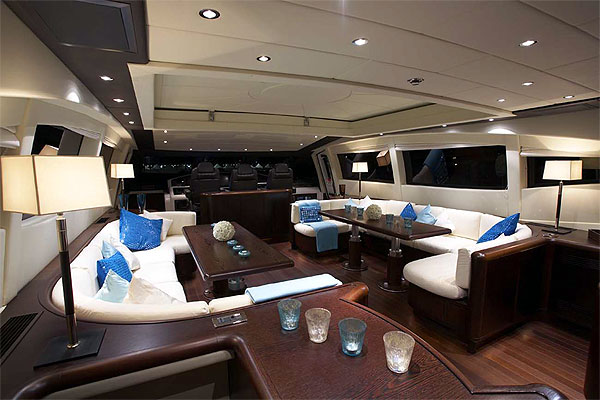 The lower deck holds three cabins and a large lounge, and all areas are enhanced with high-tech entertainment systems.
