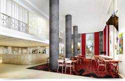 Starck’s design for the hotel will feature a stunning surrealistic feel that he describes as the guest’s “journey into your own dream world.” There will be an expansive terrace reminiscent of the outdoor cafes of Paris and Lake Como that will evoke “a perfect evening during the heights of Portofino: French sophistication and Italian elegance.” Complementing an eclectic collection of furniture, which includes a red wheelbarrow bench, a faux tree trunk table and intricate iron-crafted pieces from Mexico are black and white Moroccan tiles. Starck’s ability to blend contrasting elements is showcased in the reception area of the hotel, which depicts a retro American summer camp; the reception desk will be fashioned from a distressed slab of wood, and the lighting will come from an antique wood kayak suspended from the ceiling, while vintage stills from camping trips long forgotten adorn the wall behind the reception area.