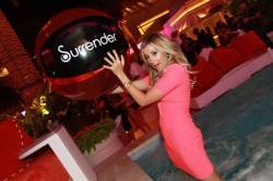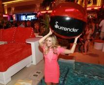 After last night’s grand opening of Mizumi at Wynn, celebrities made their way to Surrender Nightclub at Encore for “Splash Dance” Thursday, the one night of the week when it’s OK to get into the pool (usually reserved for daytime activity at Encore Beach Club).
