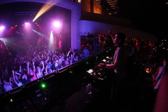 The nightclub kicked off its first night of Wynn Music Week with Thomas Gold in the DJ booth situated in front of the 90-foot cascading waterfall. Pop princess Ashley Tisdale joined the partygoers followed by blonde bombshell Paris Hilton. Cheryl Burke of “Dancing with the Stars” arrived at the crimson venue and joined the stars at a private table next to the dance floor.