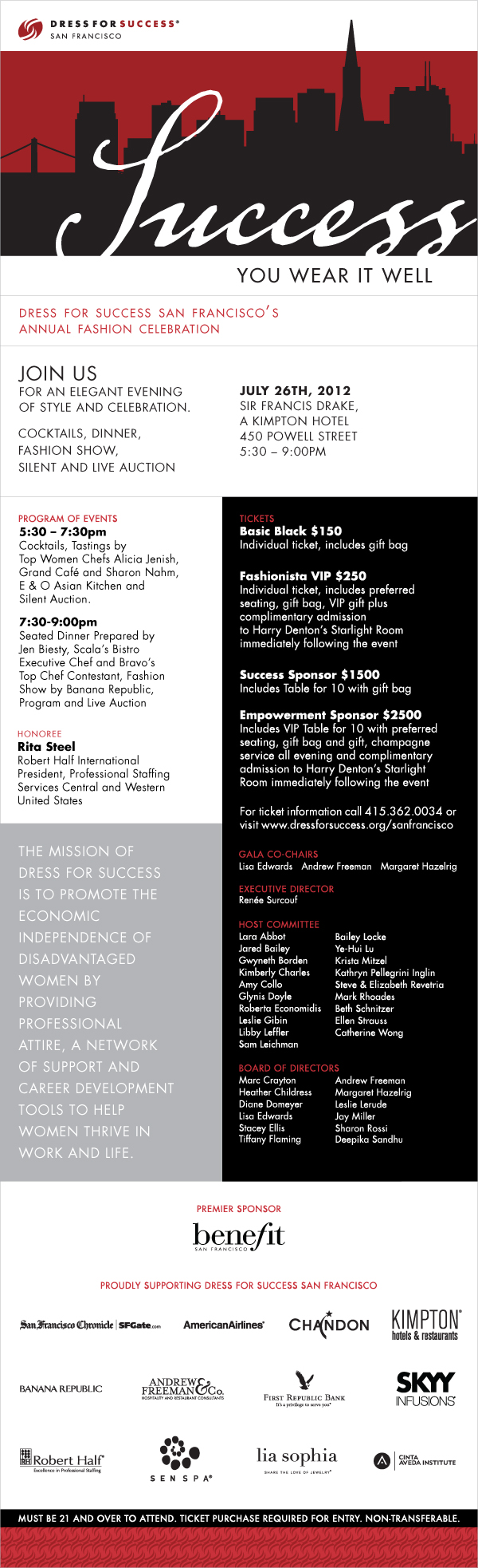On July 26, 2012, the iconic Sir Francis Drake will host the annual Dress for Success: You Wear it Well Annual Fashion Celebration Gala.