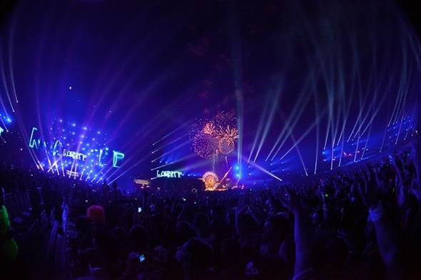 Over the last two weeks Insomniac has worked around the clock transforming the Las Vegas Motor Speedway into a 360-degree audiovisual carnival experience for the 16th Annual Electric Daisy Carnival. For the debut evening, more than 70 DJs played across seven stages from dusk until dawn, including Kaskade, Sebastian Ingrosso, Benny Benassi, Afrojack, Above & Beyond and Knife Party, surrounded by more than 500 theatrical performers, fire twirlers, aerialists, dancers and stilt walkers, amid a landscape dotted with full sized carnival rides and large-scale interactive art.