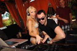 The twosome danced to the music and jumped into the DJ booth to learn a thing or two from DJ Lema. She even cooled Smiley down and hand-fed him grapes. The Bling Beach competition started and Rossi was happy to judge, helping the crowd decide what blinged out beauty would walk away with the $5,000 prize.