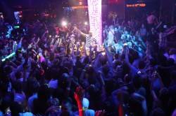 Later that night, he headed to Vanity Nightclub where he was seen hanging out with actress/model Tia Carrere and professional boxer Zab Judah. He gave his second performance of the day, rocking out on his guitar and later hopped off stage mid-song to join the partygoers in the crowd.