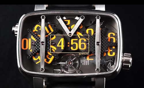 Presenting the watch 4N-MVT0/D01, a digital timepiece that pushes the limits of even the most modern technology. This mechanical watch is characterized by its digital display in jumping hour and minute. Every minute shows a different display of size and animation.