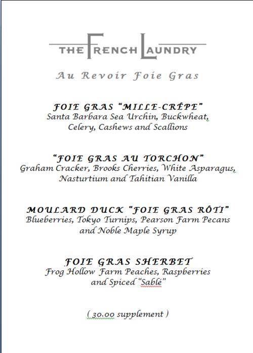 The French Laundry’s Au Revoir Foie Supplemental Menu