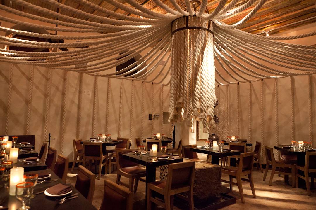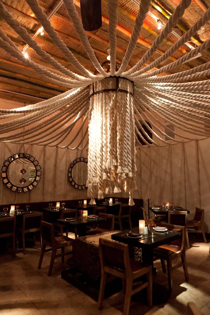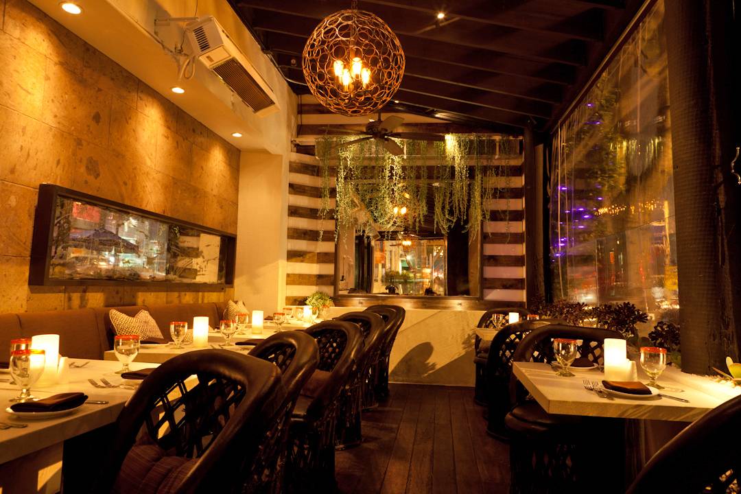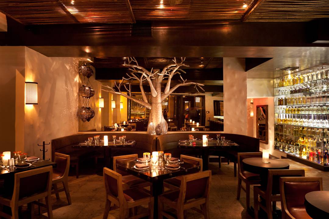 Intricate décor, dark wood and warm lighting set the intimate tone for this airy venue that offers lounge seating on the patio (perfect for girls night outs) or a table inside its dimly lit dining room with a sculptured tree that divides the formal dining room and a private area draped with hanging ropes (perfect for impressing that first date or hosting an event).