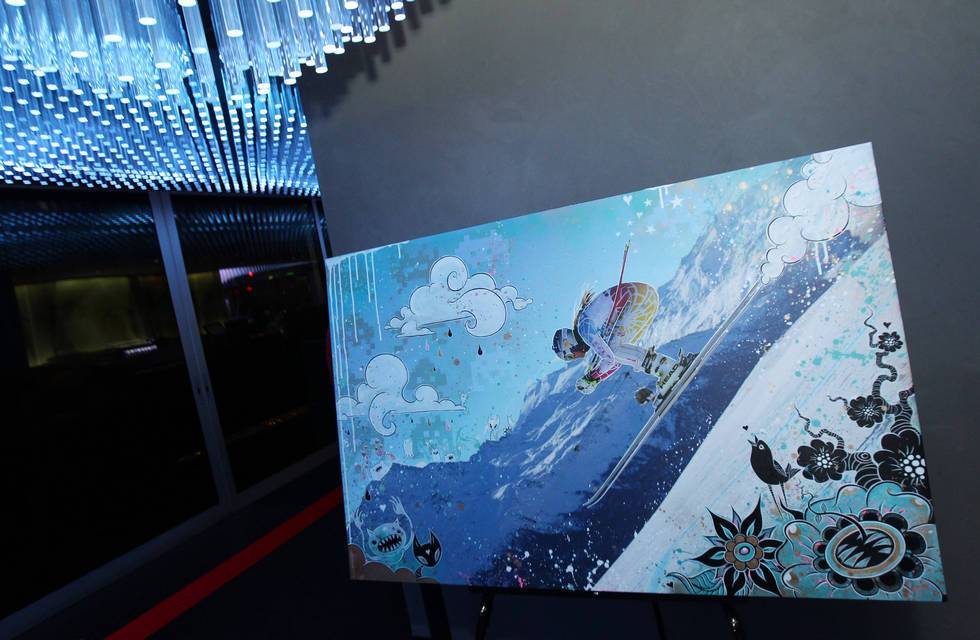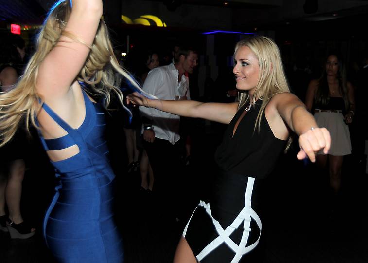The world champion skier arrived in a Red Bull branded party bus, as she ditched her ski gear and opted for a sexy little black number by Guess by Marciano.