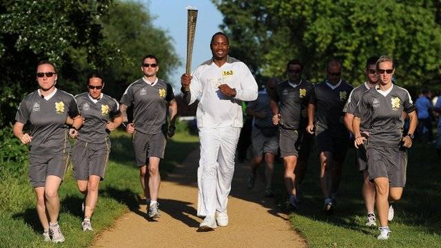 Thousands of people cheered as former world heavyweight boxing champion, Olympic gold-medalist and Haute 100 Miami lister, Lennox Lewis, carried the Olympic torch through Danson Park in Bexley.