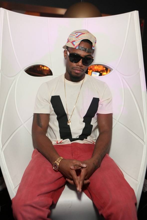 Once inside, B.o.B and friends made their way to a plush VIP booth beneath the club’s dramatic fireplace. The DJ announced “B.o.B is in the house!” and cheers and screams echoed throughout the venue. Perched comfortably on the back of a black leather couch, B.o.B soaked up the atmosphere and jammed out to Jay-Z, Kanye West and old school Michael Jackson.