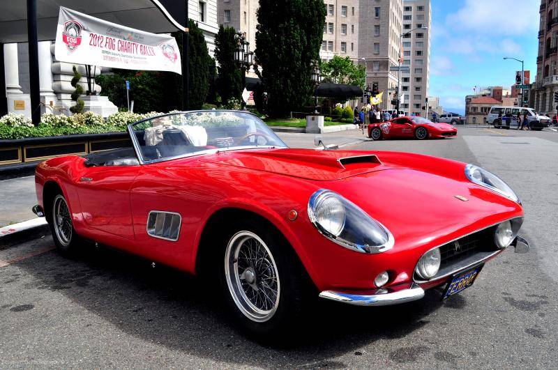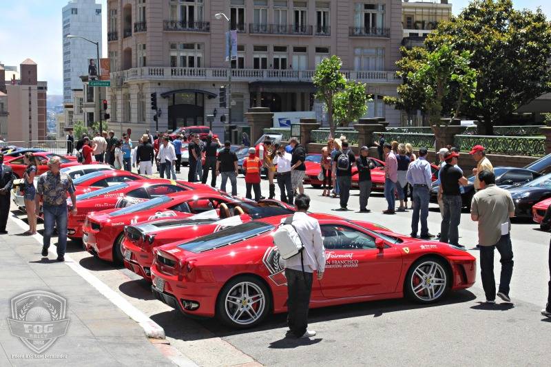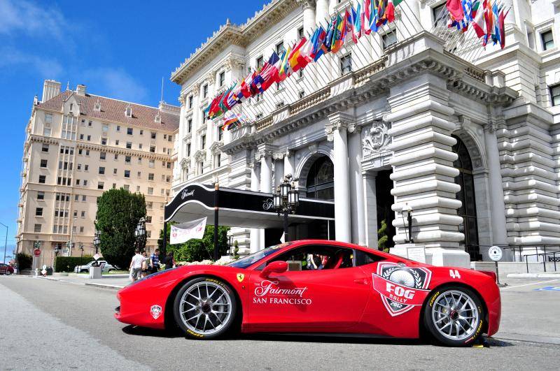 With only 3 months until the Ferrari Owners Group (FOG) Charitable Organization launches for its annual rally down to L.A., they threw a fabulous promotional event at the Fairmont Hotel.   The Fairmont closed off the street and had over 50 Ferraris parked in every color, from classic Rosso Corso to a sleek Tour de France blue and in every model, from a ultra rare and valuable 250 California Spyder to the newest 458 Spider.   They even had a special challenge 458 delivered and which may or may not have taken a deafening hot lap around the hotel.  Shhhh we won’t tell if you did or did not.