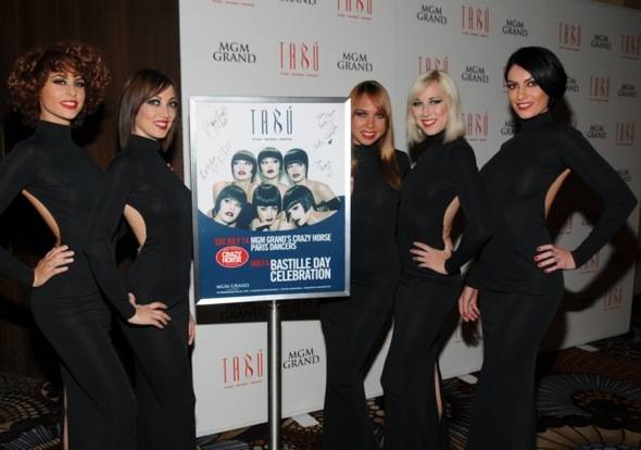 The ladies of MGM Grand’s “Crazy Horse Paris” hosted a Bastille Day celebration at Tabú at the MGM Grand on Saturday night. Looking stunning in matching long, black, backless dresses and red lipstick, the ladies arrived at the club following their 10:30 p.m. show. Guests watched as the ladies gracefully maneuvered their way through the boutique nightclub to their VIP table directly in front of the deejay booth.