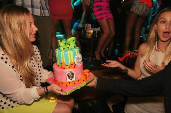 Around 12:15 a.m., they all headed over to 1 OAK Nightclub, where they were escorted to their VIP table. Resident DJ Karma dropped Rihanna’s track “Birthday Cake” featuring Chris Brown and immediately the sisters started dancing the night away. Around 2 a.m., an extravagant birthday cake was presented to a very surprised birthday girl. Whitney along with her friends and family continued to party until around 3 a.m., when they were seen leaving the nightclub.