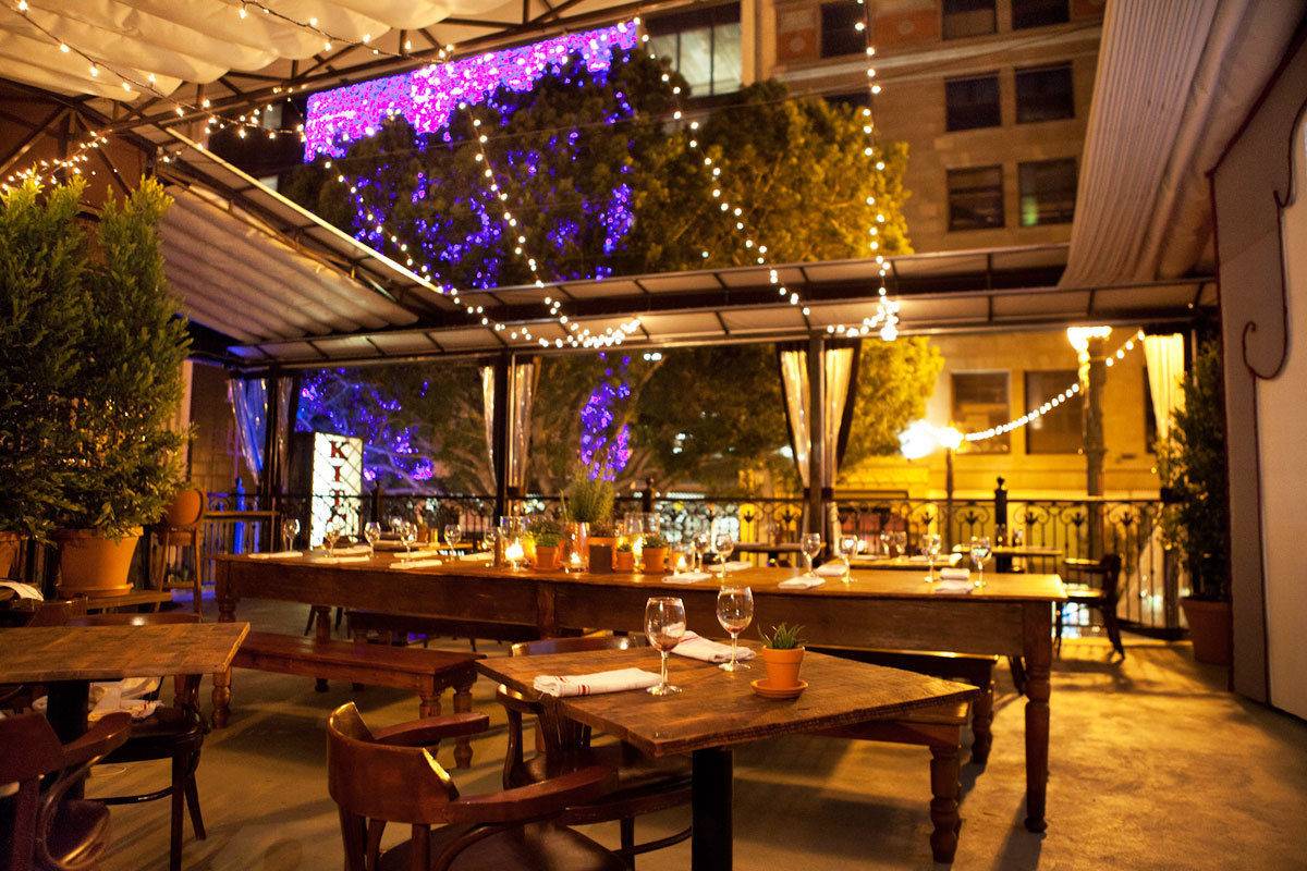 The venue has a split-dining plan, with a ground floor bar with a few dining tables and a canopied rooftop patio upstairs with rustic tables for two or a communal table for larger parties.