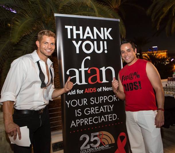 The party began on a special note with AFAN board president Marek Bute honoring the 2012 “Right to Wear Red” recipients. Every other year, AFAN honors 12 HIV/AIDS advocates from the Las Vegas community who are recognized for their continued support and dedication to fighting HIV/AIDS through generous donations of their time, money, energy and services. In the sea of black and white outfits, these 12 individuals stood out with their right to wear red and received the recognition they deserved. The 2012 “Right to Wear Red” class included John Saksa with Findlay Cadillac; Dr. Dino Gonzalez with the Internal Medicine Association; Scott Washburn with Event Consultants LLC; Tom Dietz of R&R Partners; Pamela Jenkins with The Cupcakery; Fabian Mera with The Apothecary Shops; Lea Carrasco-Zanini with Golden Rainbow; Lauren Toya with Salon Dushons; Chris Saldaña with KLAS-TV 8 News Now; Herb Schultz with the U.S. Department of Health & Human Services; Kanika Toston, Cathy Roberts and Rob Saunders representing Team Walgreens; and Congresswoman Shelley Berkley, who was the inaugural People’s Choice honoree.