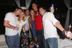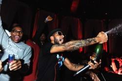On Sunday, Club Bud brought out Swizz Beatz, who headlined the room full of celebrating Olympians. Kobe Bryant and his teammates made the night a family affair as they partied with their wives; Carmelo and Lala Anthony kept the company of Bryant and his wife Vanessa as both women happened to be wearing leopard print dresses. Bryant rarely left his wife’s side and while the pair refused to take photos together, they were very affectionate as he had one arm draped across her body while she danced against him.