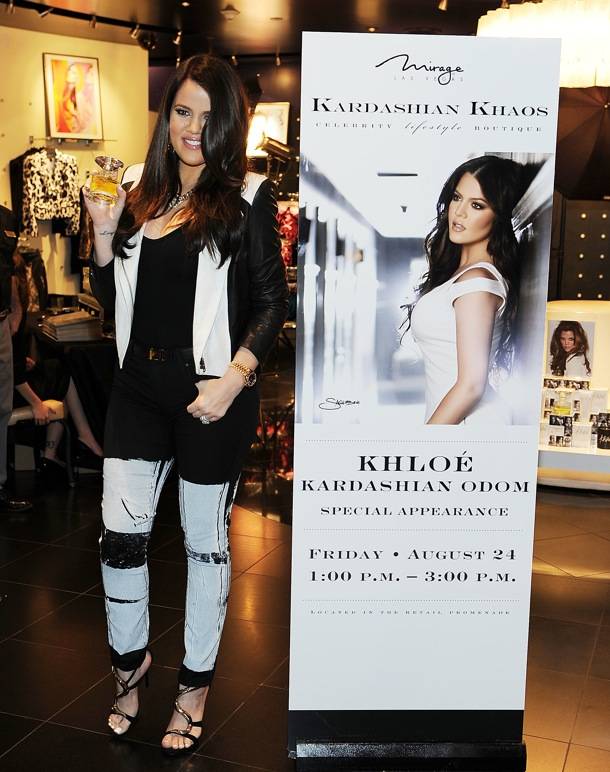 Khloé Kardashian-Odom was on hand for a special meet-and-greet appearance at Kardashian Khaos at the Mirage on Friday in support of her and husband Lamar Odom’s perfume “Unbreakable.”