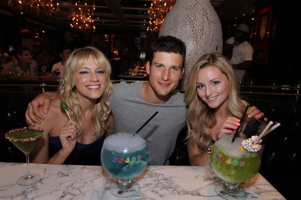 Actor Parker Young, star of ABC’s hit show “Suburgatory,” celebrated his birthday in style at Sugar Factory American Brasserie at Paris Las Vegas on Saturday night. Young, who looked dapper in a gray V-neck and stylish blue jeans, was all smiles as he arrived hand-in-hand with his stunning swimsuit model girlfriend Stephanie Weber. The dynamic duo was joined by a close group of friends including HBO’s “True Blood” beauty Brit Morgan.