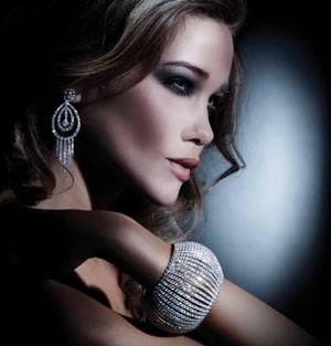 Diamond and sapphire oversized earrings, $42,000; Diamond necklace, $103,250, and bracelet, $56,280, both by Cantamessa; available at East Coast Jewelry, 16810 Collins Ave., Sunny Isles Beach, 305-947-8883