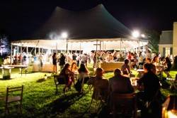 “What’s on the Table” was held at Southampton home of Avis and Bruce Richards and emphasized the need not only to help the hungry in New York City access food in times of emergency but to ensure that food they receive is fresh and nutritious. Guests dined on dishes from five of Tom Colicchio’s restaurants. Chefs from Colicchio and Sons, Craft, Riverpark, Craftsteak and Topping Rose each offered two dishes featuring a local, in-season ingredient. These included zucchini (ricotta stuffed and fried zucchini blossoms), corn (corn chowder), and raspberries (raspberry cobbler), among others.