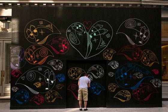 Tiffany & Co. is finally opening their much awaited Soho store in New York, but instead of a quick grand opening, for two weeks the store has displayed beautifully mastered artwork on wooden canvases that were displayed right in front of the store.