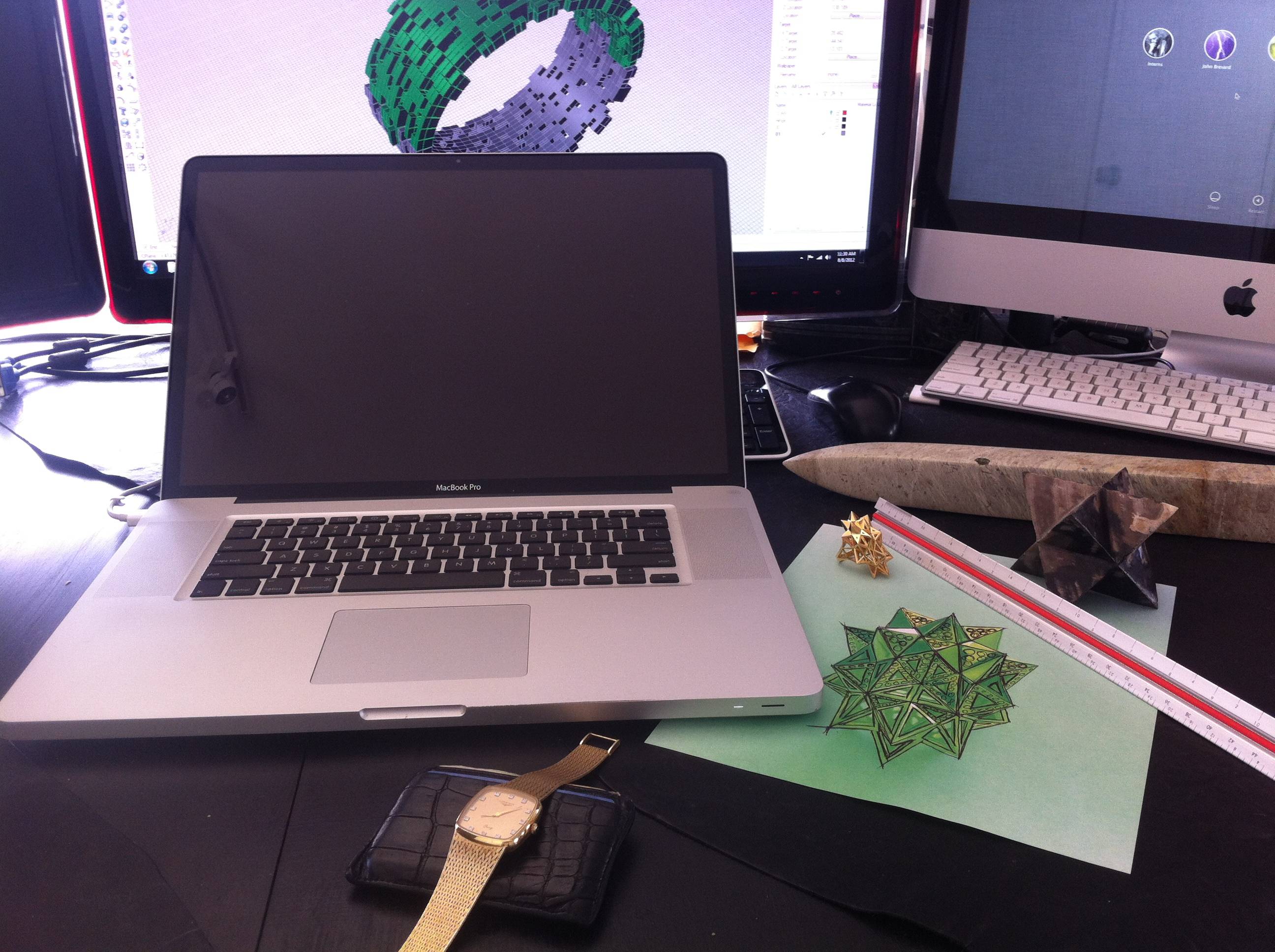 - Drawing of stellated star ring along with aluminum architectural ruler