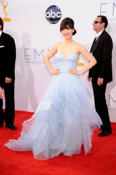 “Once Upon A Time” actress Goodwin looked lovely in an eye-catching Monique Lhullier gown and Christian Louboutin’s Unbout pumps, while “New Girl” Deschanel proved she’s a new fashion contender in her floaty Reem Acra confection.
