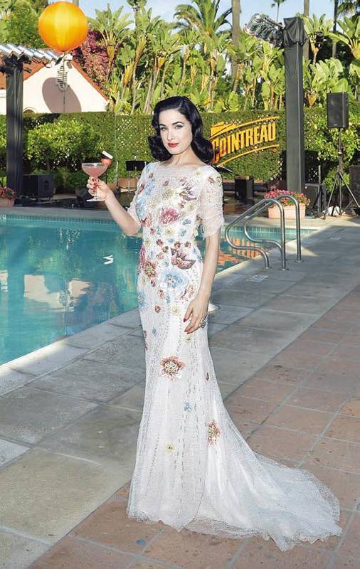 When both the Beverly Hills Hotel and Dita von Teese are involved, you know an evening of substantial glamour will ensue. Liqueur brand Cointreau kicked off their weekly poolside summer soirees at The Pink Palace on July 11 with an evening that featured a saucy burlesque performance from Von Teese as well as some stunning synchronized swimming from the beautiful water ballet ladies of the Aqualillies.