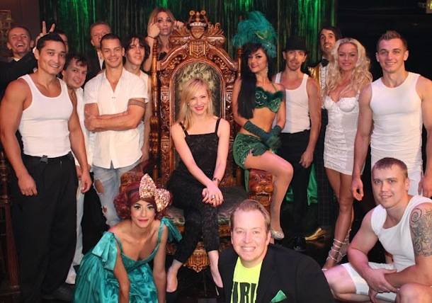 Spotted over the weekend enjoying the hilarious and eccentric antics of the “Absinthe” cast was Beth Riesgraf, the beautiful star of TNT’s drama series, “Leverage.” Riesgraf attended the show on Sept. 8 and was persuaded by the cast to capture a photo following their performance.