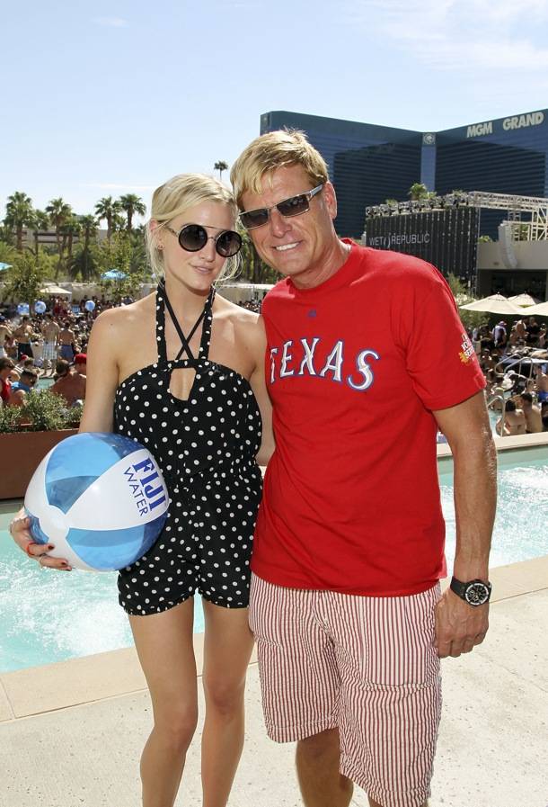 Simpson soaked up the sun and brought along Papa Joe Simpson. The petite actress enjoyed a Fiji Water snow cone in her private cabana with her dad and gal pal, but was the ever-gracious hostess when fans asked for photos with her. She, along with the other Wet Republic guests, were treated to snow cones made from Fiji Water.