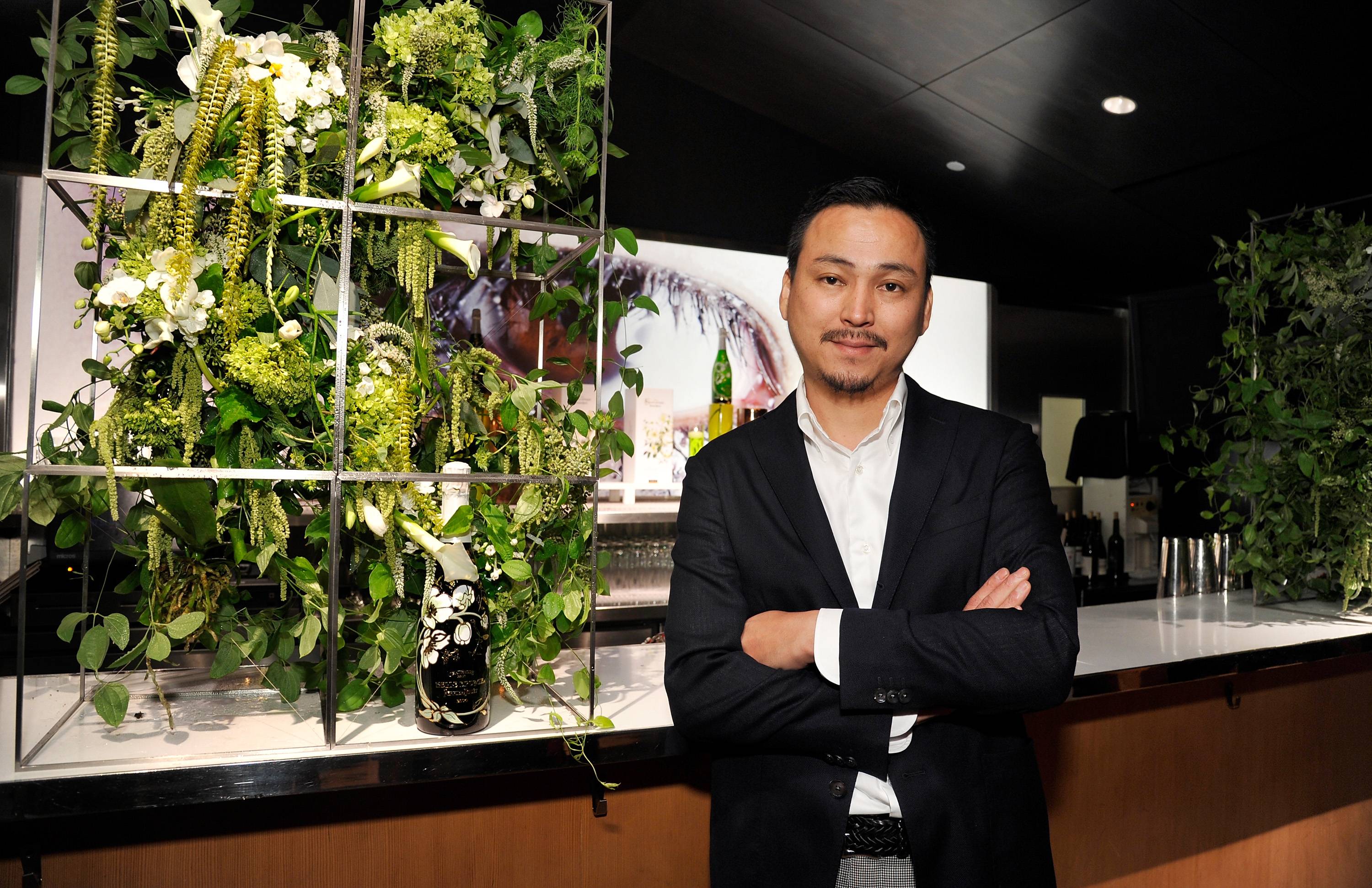 Makoto Azuma made live art last night as he unveiled his new Perrier-Jouet bottle at Katsuya Brentwood.