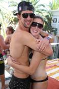 The celebration continued today at Encore Beach Club as Phelps partied in a luxury bungalow overlooking the sea of pool partiers enjoying the beautiful late summer day and music by crossover superstar DJ David Guetta. Phelps was joined by Schmitt, fellow Olympic gold medalist swimmers Nathan Adrian, Charles Houchin and several other friends.