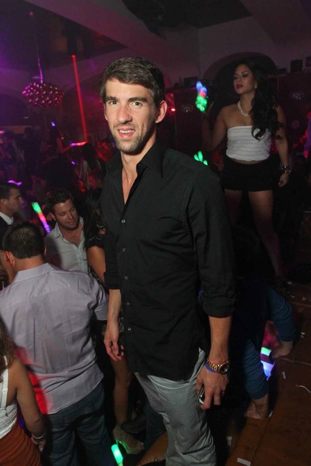 Phelps was dressed casually in blue jeans and a black, long sleeve button-up and enjoyed a Ketel One drink. Caught up in the festivities, he later tweeted “Wanna wish @Jgross5 a happy bday!!! Your the best kid!!! Love u bro!!! Weeeee!!!! @hydebellagio.”