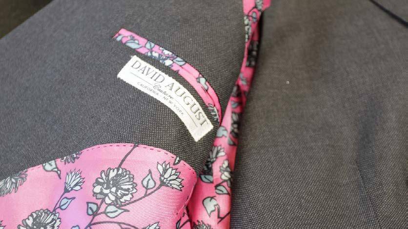 I put a lot of detail and craftsmanship into David August designs. We use wool canvas liners and wool shoulder pads— which are far more costly than synthetic materials—and we don’t fuse our garments at all.