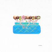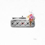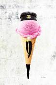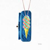 Here are some photos of Pam’s latest series of artwork, “Classy and Fabulous,” are digital designs printed on canvas that play towards the adult and the child in all of us. With her background in children’s clothing design, the use of bold colors is like eye candy, and intertwining the whimsical ice cream cones with the sophisticated handbags makes them simply irresistible.
