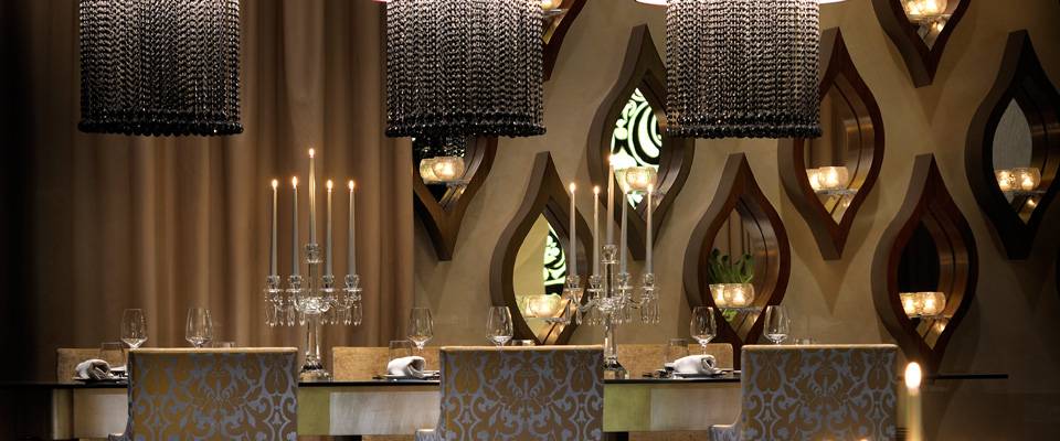 Elaborate and ornate neo-Baroque decor embellishes the ambiance of three-star Michelin Chef Yannick Alléno’s decadent restaurant STAY located within One & Only The Palm. It’s hard not be impressed by the vaulted ceilings, dazzling black chandeliers, high timber walls and dimly-lit setting – one feels secluded and immediately regal. As my guest and I were immediately awed as we stepped into the enchanted and glittering surroundings.