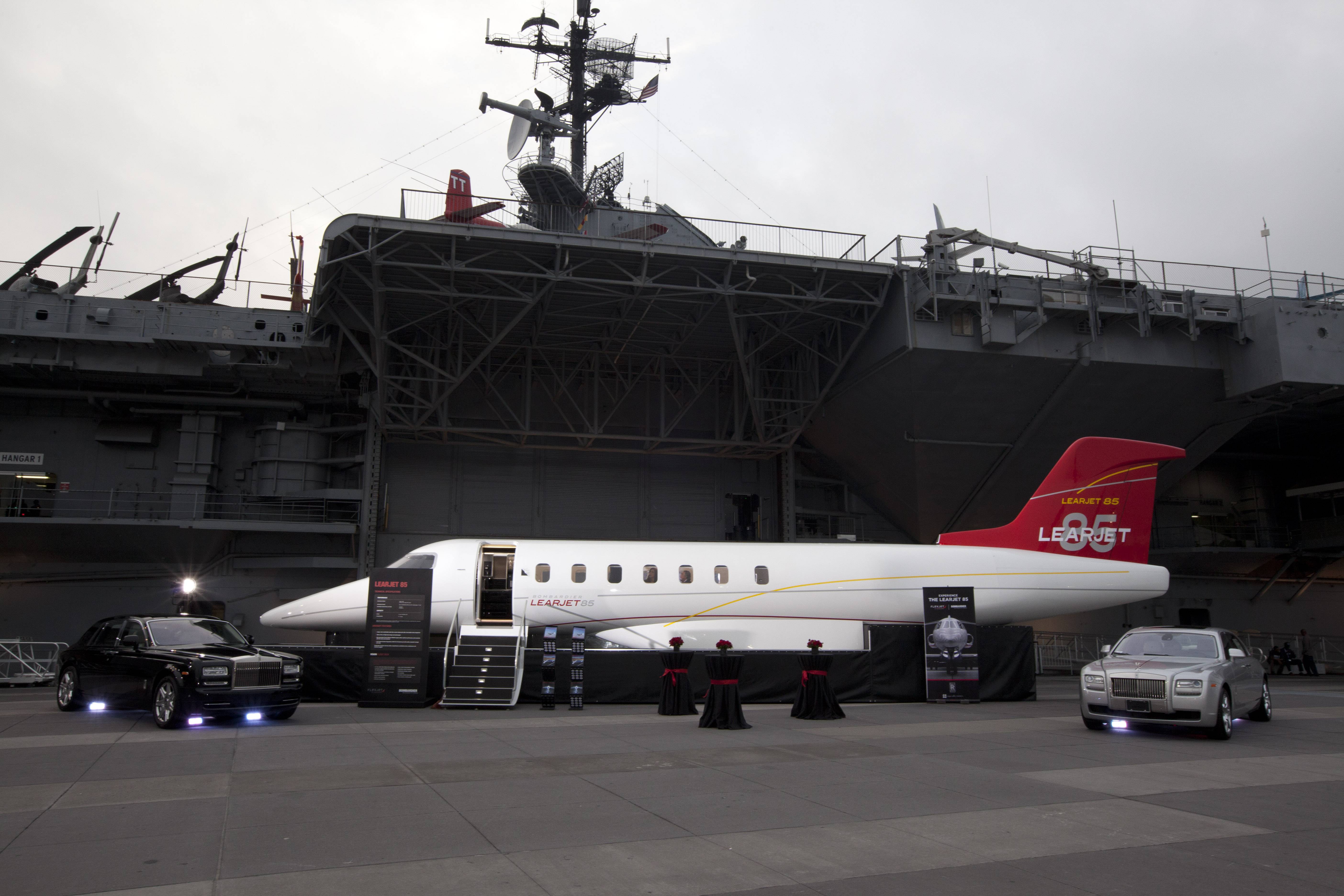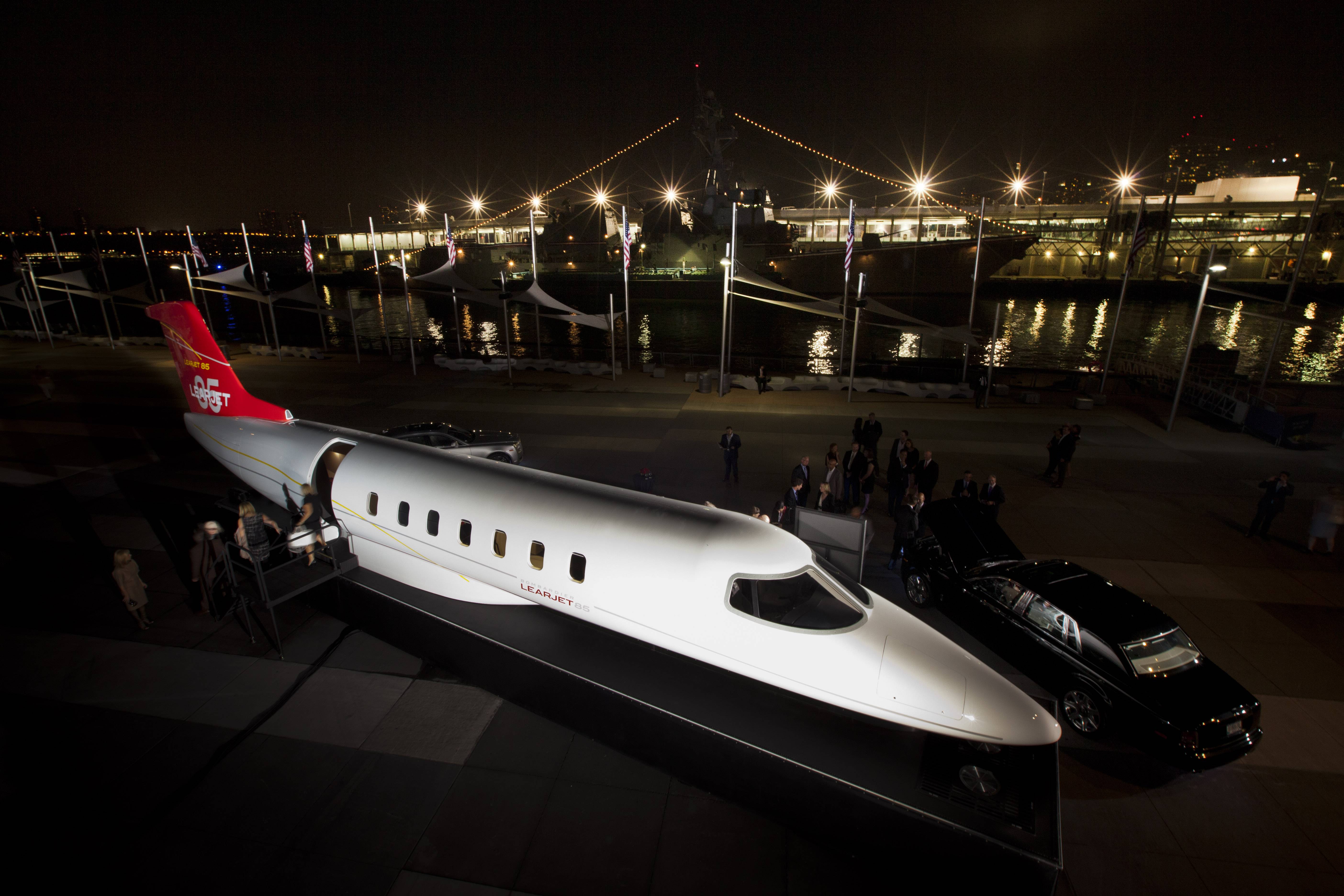 Overcast skies and a light drizzle did little to dampen the turnout at the Intrepid Sea, Air and Space Museum on Wednesday for the unveiling of the Learjet 85. Flexjet and Bombardier hosted the evening and showed off the business aircraft whose bleeding edge features include unique composite building materials that reduce drag, increase efficiency and lengthen lifespan.The 85 is capable of speeds up to Mach 0.82.