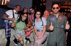 All eyes were on the dynamic duo who held court with a close group of friends, including Ryan Labbe, who sported high-waisted plaid pants and oversized glasses. Hundreds of fans screamed with excitement when Farley took to the microphone to wish guests a Happy Halloween. The geeky group treated themselves to Grey Goose cocktails and snacked on gummy worms and candy corn, a favorite confectionary of the super sweet starlet.