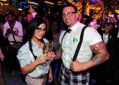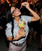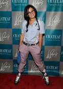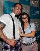 Reality television vixen Jenni “JWoww” Farley celebrated Halloween at Chateau Nightclub at Paris Las Vegas Saturday night. The newly engaged star dressed as a “nerd” wearing thick-framed glasses, suspenders, plaid pants and black Coach high-top sneakers as she arrived at the nightclub. Fiancé Roger Mathews complemented Farley’s nerd bombing costume sporting a white button up with black suspenders and a bow tie.